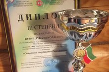 Поздравляем ученика 10а класса Кузина Луку занявшего 3 место в Республиканском конкурсе на знание государственной символики России и Республики Татарстан в номинации "Символика государства российского"