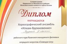 Гимназиянең Г.И.Сабирова җитәкчелегендәге "Илһам" бию ансамбле "Йолдызлык - 2015" фестиваленең район этабында III урынга лаек булып, шәһәр этабында катнашу хокукы алдылар. Котлыйбыз!