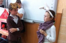 Театральные традиции 10.10.2016 Добрая традиция живет в 4 в классе. Каждый год дети сами готовят постановки для первоклассников. Вот и в этом году они подготовили сказку "Лиса и Заяц".