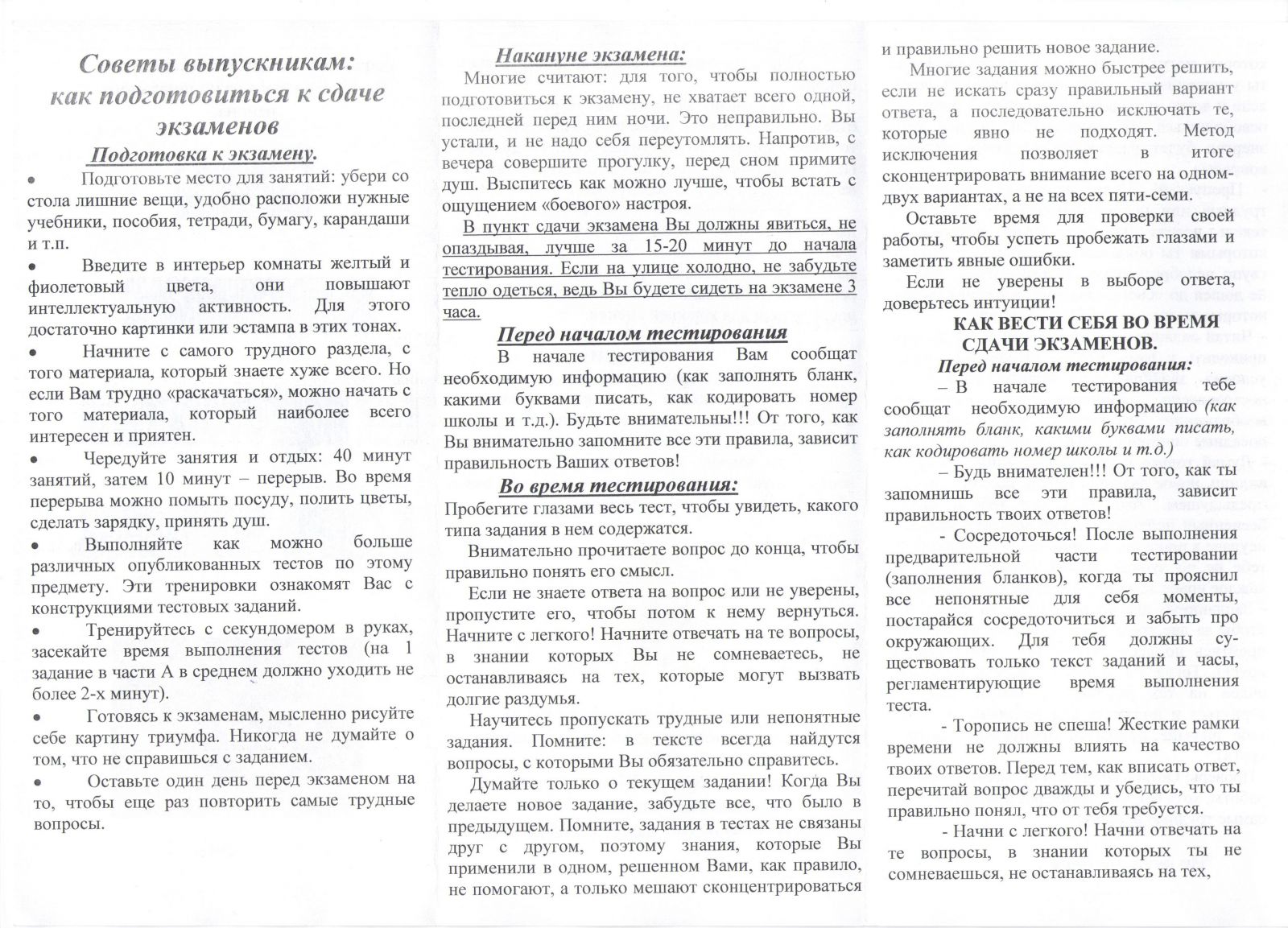 Памятка. Как подготовиться к экзаменам.