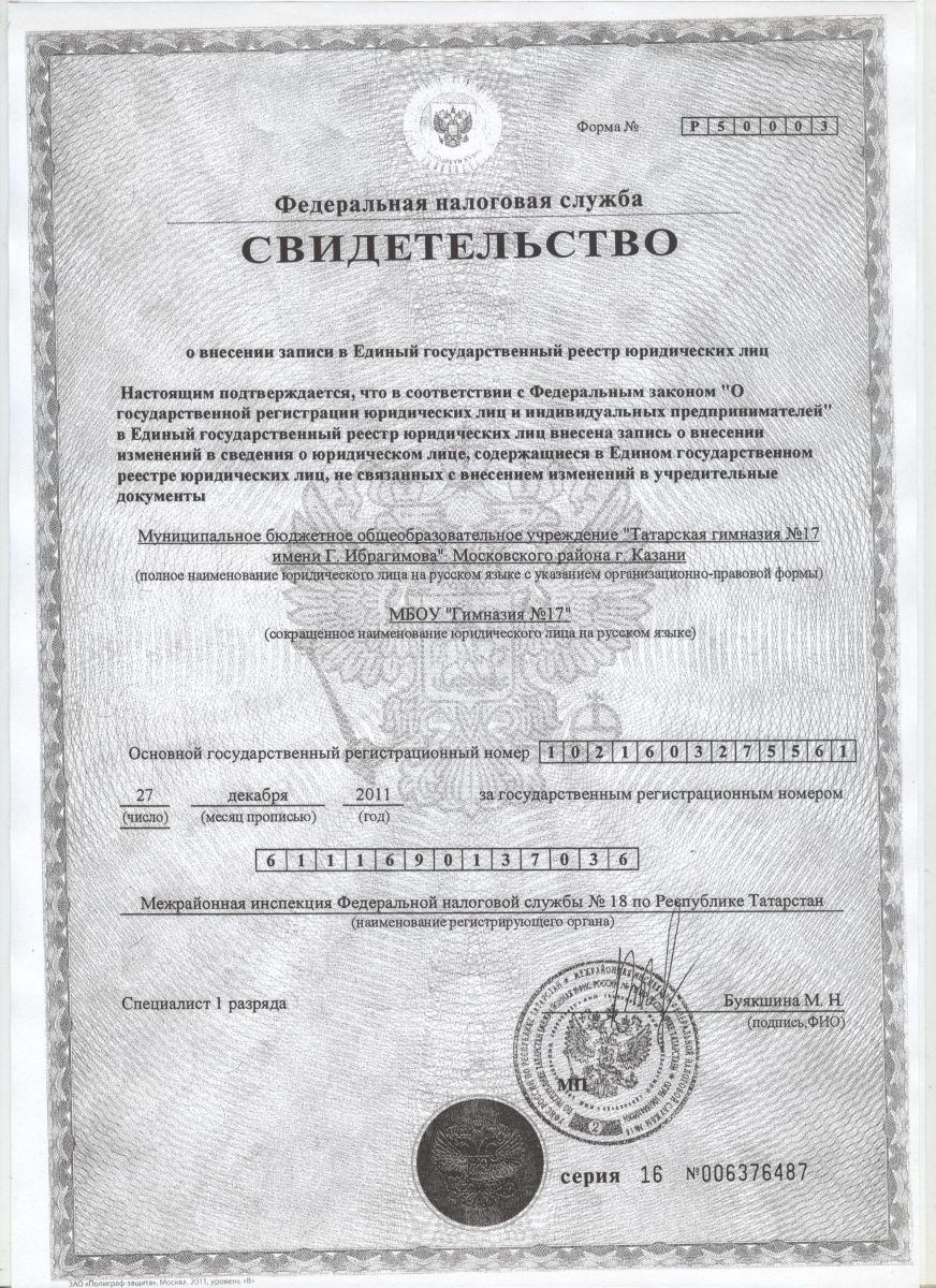 Муниципальное бюджетное общеобразовательное учреждение «Татарская гимназия №17 имени Г. Ибрагимова» Московского района г. Казани