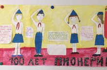 С приближением 100-летнего юбилея пионерской организации, без которой не представляли свое детство все дети великой Советской страны, история пионерского движения вызывает все больший интерес. Учащиеся нашей школы не остались в стороне от этого события, участники редколлегии Совета школы подготовили стенгазету к конкурсу среди общеобразовательных учреждений «Ты самый лучший, пионерский вожатый!», посвященный 100-летию Пионерии. На стенгазете учащиеся так же разместили лозунги по системе Брайля.