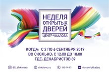 Мальчишки и девчонки, а также их родители! Приходите к нам в Центр Чкалова на Дни открытых дверей! У нас есть кружки по самым разным направлениям, на любой вкус, для детей и взрослых! Причём не только платные, но и бесплатные, что по нынешним временам редкость Приходите и записывайтесь, осталось три дня!!!