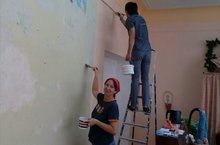 Продолжается подготовка кабинетов к учебному году. Силами педагогов и родителей выполнен косметический ремонт стен.