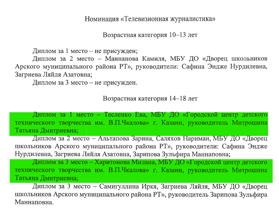 Опубликовано: 04.06.2024Поздравляем Тесленко Еву и Харитонову Милану (педагог Митрошина Т.Д.) с 1 и 3 местами в Республиканском этапе Всероссийского конкурса юных кинематографистов "Десятая муза"!