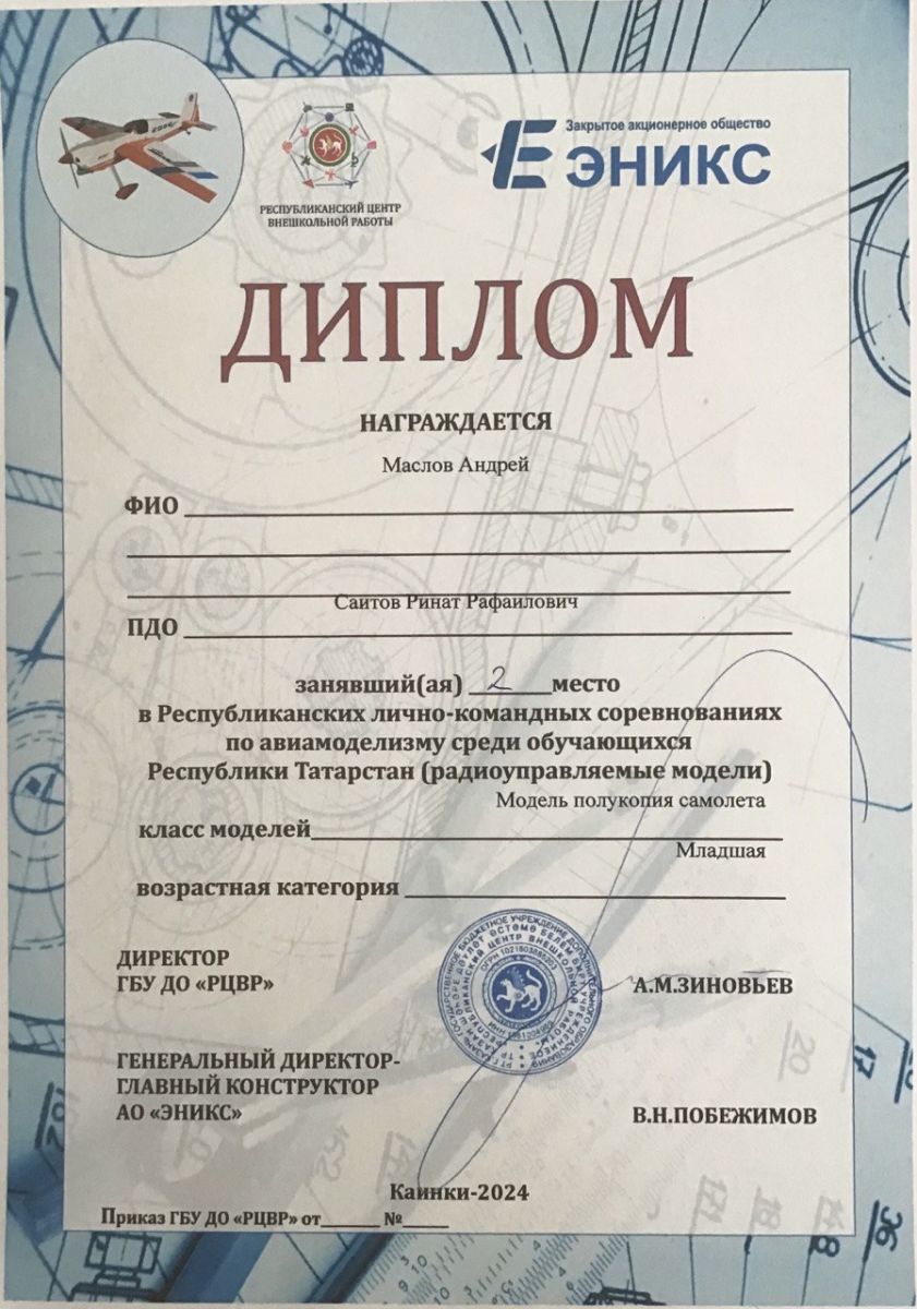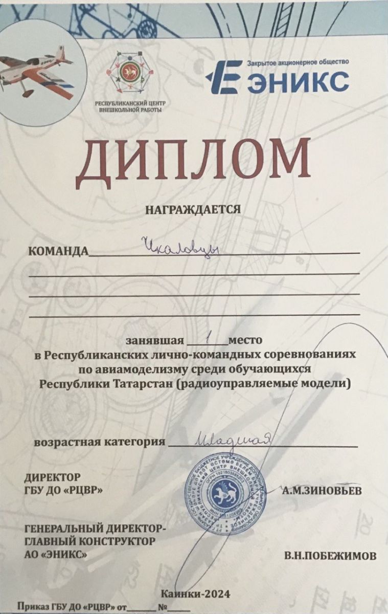 Опубликовано: 01.07.2024Поздравляем команды педагогов Саитова Рината Рафаиловича и Шаргина Вячеслава Павловича с 1 и 3 командными призовыми местами в Республиканских лично-командных соревнованиях по авиамоделизму! Ребята заняли как командные, так и личные призовые места: