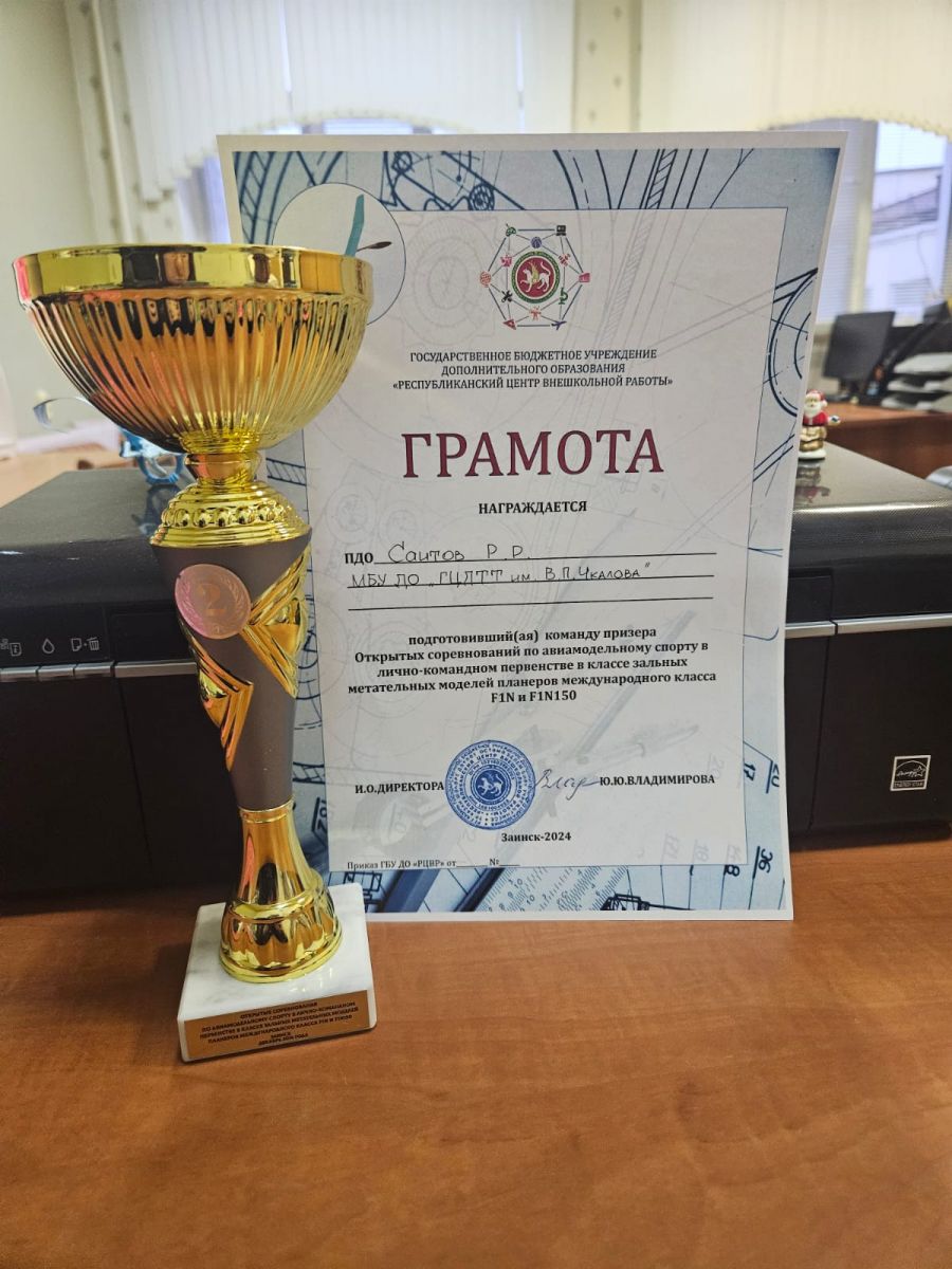 Опубликовано: 02.12.2024Поздравляем педагога Саитова Рината Рафаиловича и его обучающихся с призовыми местами в соревнованиях, которые проходили 30.11 и 01.12! Ребята получили награды в Первенстве г. Казани по комнатным авиамоделям (30.11) и в Открытых соревнованиях по авиамодельному спорту в лично-командном первенстве в классе зальных метательных моделей планеров F1N и F1N150 (01.12)