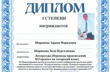 Поздравляем победителя IX Международной научно исследовательской конференции проектных работ обучающихся и педагогов "Хузиахметовские чтения. Основные направления совершенствования средств и методов обучения и воспитания", посвященной Году педагога и наставника в России, Году национальных культур и традиции в РТ.
