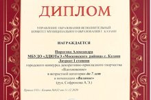 Поздравляем победителей городского конкурса декоративно - прикладного творчества "Вдохновение" Пирогову Александру лауреат I степени в номинации "Валяние" (рук. Софронова А.Э.) и Шайдуллину Малику лауреат III степени в номинации "Художественная обработка ткани" (рук.Софронова А.Э.). Желаем дальнейших ПОБЕД!!!