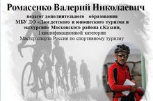 Педагог ДДЮТиЭ Ромасенко Валерий Николаевич принял участие в районном этапе городского конкурса "Учитель года города Казани 2017" в номинации "Педагог дополнительного образования - 2017". 11 декабря на базе МБУ ДО "ЦДОД "Заречье"" Кировского района г.Казани состоялась защита дополнительной общеобразовательной программы "Веломарафон", 13 декабря на базе МБОУ "Гимназия № 50" Кировского района г.Казани было проведено открытое занятие " Введение в программу объединения "Велотуризм""