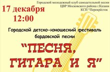 Прослушивание: 8 и 9 декабря 16:00-18:00ч. в Центре внешкольной работы Московского района (ул. Восстания, д.61а, каб. № 4). Заявки на участие принимаются до 6 декабря! Финальный конкурсный концерт состоится: 17 декабря (вс.) в 12.00ч. в Центре внешкольной работы Московского района. Участие в фестивале без вступительных и оргвзносов. Призеры награждаются Дипломами и памятными призами. Вход свободный, приглашаем зрителей!