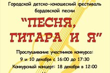 Приглашаем юношей и девушек принять участие в Городском Детско-юношеском фестивале бардовской песни "Песня, гитара и Я" ! Конкурс проводится в нескольких номинациях: • «Исполнители» • «Авторы-исполнители» (авторы музыки, авторы музыки и слов) • «Дуэты и ансамбли» "Военно-патриотическая песня".