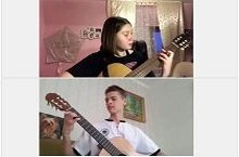 Учащиеся объединения «Струнные инструменты», дистанционно занимаясь на гитаре, домре и балалайке, под руководством педагога Кибардиной Н.М. изучают репертуар, посвящённый дню Победы: «День победы», «Огонёк», «Песенка фронтового шофёра», «Катюша», «Три танкиста».