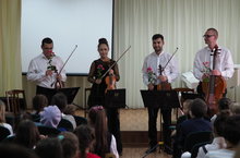 Сегодня, 3 октября, в нашей школе струнный квартет Государственного симфонического оркестра Республики Татарстан под управлением Александра Сладковского провёл урок из цикла образовательного проекта "ВОЛШЕБНЫЕ СТРУНЫ КВАРТЕТА". На уроке-концерте дети и преподаватели познакомились с музыкальными произведениями разных стран мира. В исполнении музыкантов оркестра прозвучали сочинения композиторов Республики Татарстан, Средней Азии, Армении, Исландии, США и Венгрии. Слушатели очень тепло принимали артистов, благодарно одаривая их громкими аплодисментами!