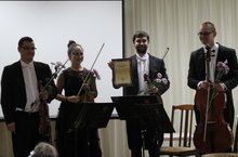 12 октября 2018 года в концертном зале нашей школы прошёл замечательный концерт из цикла образовательного проекта "Волшебные струны оркестра" струнного квартета Государственного симфонического оркестра Республики Татарстан под управлением Александра Сладковского. Дети и преподаватели познакомились с историей киномузыки, а также услышали мелодии из популярных зарубежных и советских фильмов. В исполнении музыкантов прозвучали саундтреки из фильмов "Пираты карибского моря", "Доктор Живаго", "Кавказская пленница, или новые приключения Шурика" и других известных кинолент.Исполняемая музыка вызвала неподдельный интерес у слушателей. Концерт завершился бурными аплодисментами, вручением цветов и пожеланиями дальнейшего сотрудничества! -