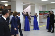 В стенах ЦНО президента и почётных гостей встретил ансамбль кураистов ДМШ №32 под управлением Хисамова А.А., концертмейстер Гарифуллин И.В. Они исполнили попурри на темы татарских народных песен. http://kzn.tv/kzntube/rustam-minnikhanov-posetil-centr-nacionalnogo-obrazovanija/Татарская гимназия N2 им. Ш.Марджани города Казани с 1 сентября нынешнего года функционирует в новом статусе - Центра национального образования. Основная особенность центра - реализация непрерывности образовательного процесса на родном языке, начиная с детского сада и заканчивая вузом, на основе истории, традиций и культуры народа. Гимназия будет являться ресурсным центром Министерства образования и науки РТ, Казанского федерального университета по сохранению обобщению и распространению опыта работы по организации обучения на родном языке.Президенту Татарстана продемонстрировали музейные комнаты в школе, в том числе экспозицию, посвященную Шигабутдину Марджани. Здесь почетным гостям показали ряд экспонатов XIX века. Кроме того, в школе хранятся около 400 единиц образцов татарской живописи и скульптуры - часть из них тоже сегодня осмотрел Президент Татарстана.В актовом зале для почетных гостей было организовано выступление детского творческого коллектива, а в спортивном зале - показательные выступления юных мастеров борьбы куреш.Президент Татарстана посетил также столовую, где лично ознакомился с меню, предлагаемым школьникам, сообщает Пресс-служба Президента РТ.http://www.tatar-inform.ru/news/2014/10/06/425509/http://kazan24.ru/news/209923.htmlhttp://sntat.ru/reportages/5958-rustam_minnikhanov_posetil_tsentr_natsionalnogo_obrazovaniyahttp://prav.tatarstan.ru/rus/index.htm/news/344672.htm -