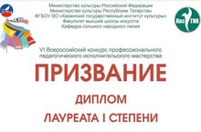 Поздравляем САФИНУ Камиллу Раисовну и ВАЛИУЛЛИНУ Лилию Ильнаровну с присуждением Лауреата 1 степени во Всероссийском конкурсе профессионального педагогического исполнительского мастерства "Призвание".