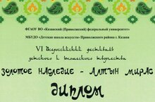 В VI Всероссийском фестивале детского и юношеского национального творчества «ЗОЛОТОЕ НАСЛЕДИЕ – АЛТЫН МИРАС» на базе МБУДО «Детская школа искусств» Приволжского района г. Казани успешно выступили ученики нашей школы:Дуэт Казакова Нафиса, Казакова Суфия (преподаватели: Калимуллина Ф.Х, Гараева И.Р.) – Лауреат 1 степени;Алиакберова Йолдыз (преподаватель: Сафина К.Р., концертмейстер Волкова Л.Х.) – Лауреат 1 степени;Саматова Аделя (преподаватель: Сафина К.Р., концертмейстер Волкова Л.Х.) – Лауреат 2 степени.Благодарственными письмами в фестивале за высокий уровень подготовки награждены преподаватели Калимуллина Ф.Х., Гараева И.Р., Сафина К.Р., концертмейстер Волкова Л.Х.Поздравляем с выдающимися успехами, желаем покорения новых вершин творчества! -