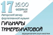 Мы приглашаем Всех желающих посетить авторский вечер фортепианной музыки Гульнары Тимербулатовой, который состоится 17 февраля по адресу ул. Лобачевского, 10 "Союз композиторов РТ".