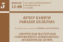 Мы приглашаем Всех желающих посетить вечер памяти Р. Белялова, который состоится 3 февраля «Зал союза композиторов РТ» по ул. Лобачевского д. 10.