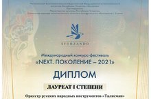 10 апреля 2021 года прошел Международный конкурс-фестиваль «NEXT. Поколение — 2021», в котором Оркестр русских народных инструментов нашей школы «Талисман», рук. Сорокина Елена Викторовна, Марданова Галия Фазлтдиновна, стал Лауреатом 1 степени.