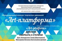 21 марта 2021 года прошел Международный конкурс творческих дарований «Art-платформа», в котором учащиеся и преподаватели нашей школы приняли участие и заняли призовые места: