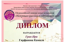 25 марта 2021 года в Детской музыкальной школе №1 им.П.И.Чайковского состоялся Концерт учащихся струнно-смычковой секции ДМШ и ДШИ г. Казани «Встречаем Весну...», в котором приняла участие учащаяся ТДМШ №32 Мударисова Азалия. Преподавателю Мардановой Гульнаре Ритальевне была выражена Благодарность.