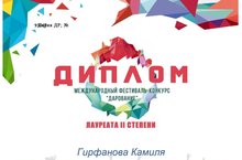 Габдрахманова Дина, преп. Биктимерова А.И., стала Дипломантом 1 степени.