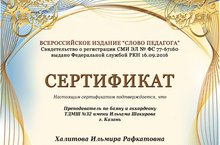 А также Ильмира Рафкатовна приняла участие во Всероссийской конференции «Информационно-коммуникативные технологии как форма организации деятельности обучающихся» с докладом на тему: Роль инновационных технологий в формировании исполнительских навыком в классе баяна (аккордеона) в ДМШ и ДШИ.