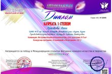 В феврале 2021 года прошел Международный открытый фестиваль-конкурс искусства и творчества «Ангелы надежды», в котором учащаяся нашей школы Аристова Анна, преп. Шакирова Татьяна Викторовна, стала Лауреатом 1 степени.