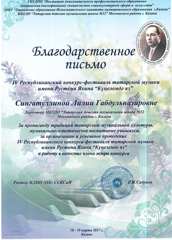 Муниципальное бюджетное учреждение дополнительного образования «Татарская детская музыкальная школа № 32 имени Ильхама Шакирова" Московского района г. Казани