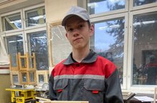 Воспитанники Амерханов Станислав и Сабиров Артур демонстрирует своё мастерство в компетенции «Столярное дело» под руководством мастера производственного обучения Поспелов Е.В. -