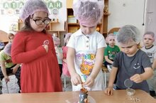 Сегодня в средней группе педагог — Мельникова З.Т.провела увлекательнейший эксперимент под названием «Вулкан», с целью сформировать у ребят элементарный взгляд на одно из удивительных природных явлений — вулкан! ✨ Во время занятия педагог наглядно продемонстрировала детям химическое явление взаимодействия щелочи с кислотой, показав реакцию нейтрализации. Ребята были полны энтузиазма и интереса, наблюдая процесс реакции кислоты и щелочи, имитирующей извержение настоящего вулкана. Это помогло создать атмосферу захватывающего научного исследования, способствующую развитию познавательной активности наших маленьких учёных. Эксперимент прошёл успешно, дети получили массу положительных эмоций и знания, полезные для развития их кругозора и понимания природы вокруг себя.