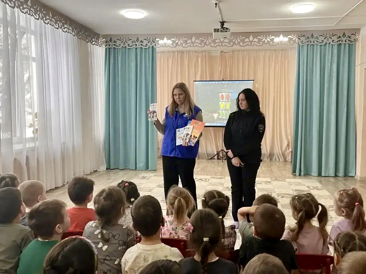 Сотрудники ГИБДД регулярно организуют профилактические мероприятия в детских садах, направленные на повышение уровня безопасности детей на дорогах. На этой неделе подобная встреча состоялась и в нашем дошкольном учреждении. Наш детский сад посетил инспектор по обеспечению безопасности дорожного движения младший лейтенант полиции Вагизова Э.Р., а также ведущий специалист отдела профилактики Государственного бюджетного учреждения Безопасность дорожного движения Зиганшина И.М Основной акцент встречи был сделан на правилах безопасного поведения зимой, особенно при передвижении по скользким дорогам, а с педагогами проведена профилактическая беседа. После теоретической части ребятишки активно участвовали в беседе, рассказывая о знании сигналов светофора и правил перехода улицы. Завершением встречи стало вручение детям книжек с увлекательными заданиями по правилам дорожного движения. Помимо этого, ребятам показали познавательные мультфильмы, закрепляющие полученные знания. Таким образом, такие встречи помогают формировать у наших воспитанников правильные привычки и ответственное отношение к собственной безопасности на дорогах.