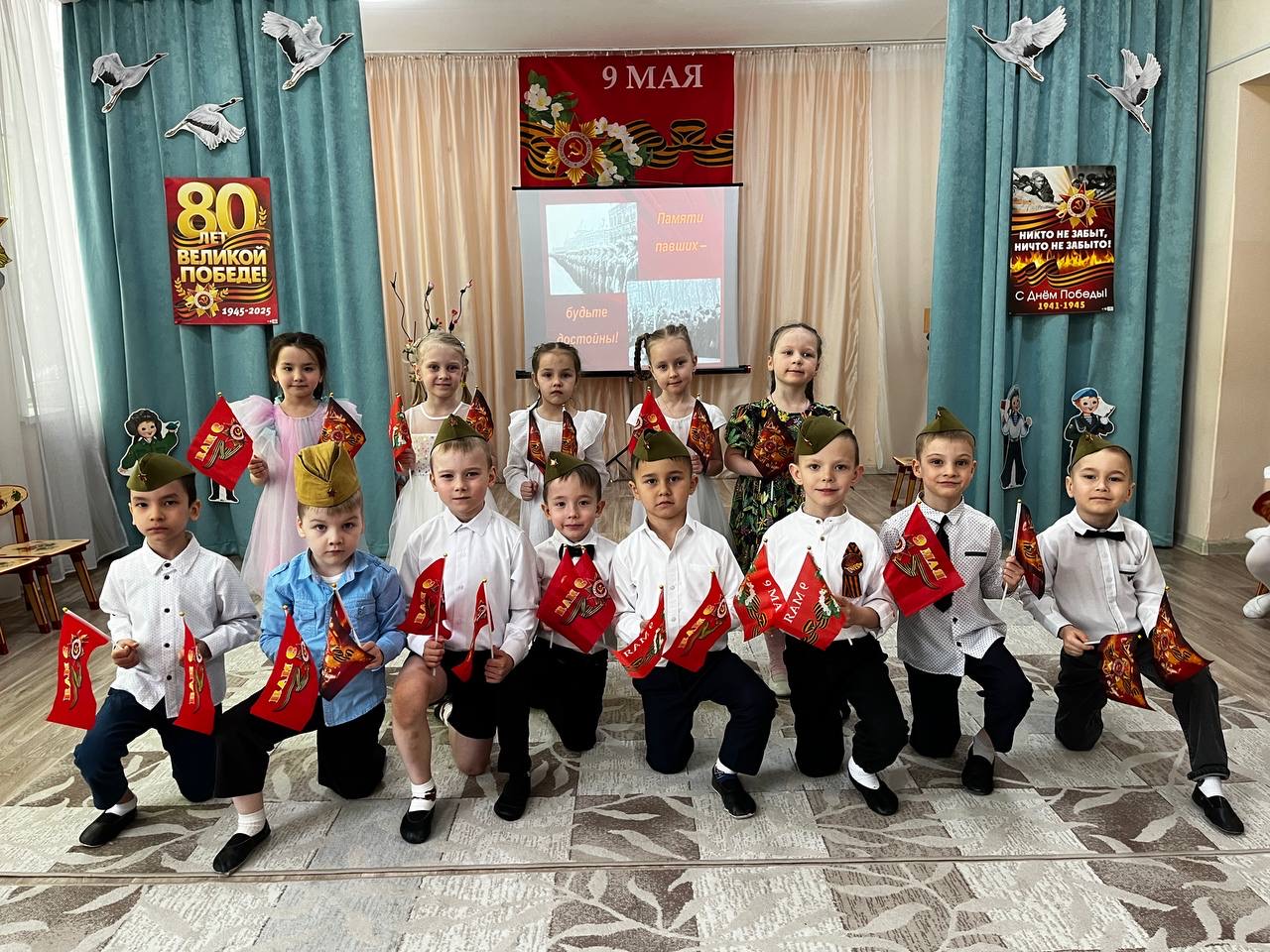 Опубликовано: 07.05.2025В преддверии великого праздника — Дня Победы в детском саду прошло торжественное мероприятие https://vk.com/wall-216332399_614, посвящённое 9 мая. Этот день наполнен особым смыслом: он учит детей помнить и чтить подвиг героев, отстоявших мир. Воспитанники детского сада подготовили трогательную программу: они исполняли песни военных лет, читали патриотические стихи и танцевали. Каждое выступление было наполнено искренностью и уважением к тем, кто подарил нам мирное небо над головой. Ребята почтили память героев минутой молчания. Именно такие моменты остаются в сердцах детей навсегда. Сколько бы лет ни прошло, память об этой войне и о Великой Победе должна жить в наших сердцах, чтобы не прерывалась связь времён.
