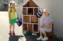 В июле месяце в нашем детском саду прошел проект "Отель для насекомых". Воспитанники познакомились с насекомыми родного края, узнали об исчезающих видах, которые занесены в Красную книгу Татарстана. Итогом работы стал домик-отель для насекомых. Наполнение домика полностью состоит из природных материалов: шишек, коры деревьев, стебельков растений и кустарников, переработанной древесины - картона. Дети, по своему желанию, сами оформили "комнатки" для своих младших братьев-насекомых. К домику-отелю прилагается лупа и фонарик. Воспитанники, родители и сотрудники с удовольствием рассматривают всех его обитателей!