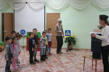 С детьми старшего дошкольного возраста провели профилактическое занятие "Движение без опасности". Во время развлечения дети повторили и обобщили свои знания о правилах дорожного движения. А Лейля Арслановна в роли полицейского объяснила и закрепила через игру команды, подаваемые жезлом. Дети были очень довольны.