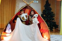 Сегодня в наш детский сад приехал театр Пеликан с кукольным спектаклем "Умка"