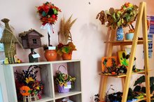 На первом этаже расположилась выставка «Осень золотая» из природного материала.