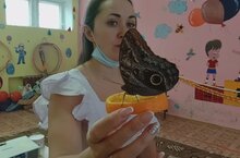 Сегодня к нам в детский сад приехало «Шоу Тропических Бабочек». Выездная выставка – лекция с участием живых тропических бабочек.