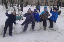 Воспитатель Гараева Р.Н с детьми старшей группы №5 изгововили снежные постройки на своем участке.