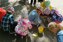 В Международный день защиты детей в нашем детском саду был проведен праздник на свежем воздухе "Детство - яркая планета" и смотр-конкурс рисунков на асфальте мелом "Мир детства".