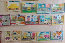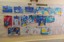 Выставка рисунков на тему правильного поведения детей на дорогах.