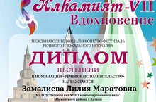 Воспитанница детского сада Замалиева Лилия Маратовна стала номинантом III степени Международного онлайн конкурса-фестиваля речевого и вокального искусства Илхамият - VII Вдохновение. Примите наши искренние поздравления!