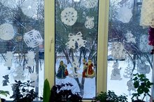 Наши воспитанники и педагоги вырезали по трафаретам новогодние узоры, образы Деда Мороза и Снегурочки, снеговиков, снежинки и оформляли окна. Теперь ребята с удовольствием любуются на результаты своих трудов и фантазии, а мы надеемся, что не только наши воспитанники и педагоги, но и любой прохожий, бросив беглый взгляд на наш детский сад, найдет в каком-либо окошке своё праздничное настроение.