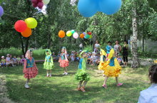 Накануне Дня России в нашем детском саду прошел праздник, посвященный этому событию. Ребята читали стихи, пели песни, танцевали, играли в подвижные и музыкальные игры, соревновались, побеждая во славу России. А в группах детей старшего дошкольного возраста смотрели презентацию "Моя Россия". Целью всех мероприятий, проходивших в детском саду, было формирование у детей представлений о России как о государстве, о родной стране; воспитание чувства любви к родному краю, Родине.