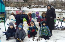 Наши дети из подготовительной группы, организовали на площадке "Снежные поделки"