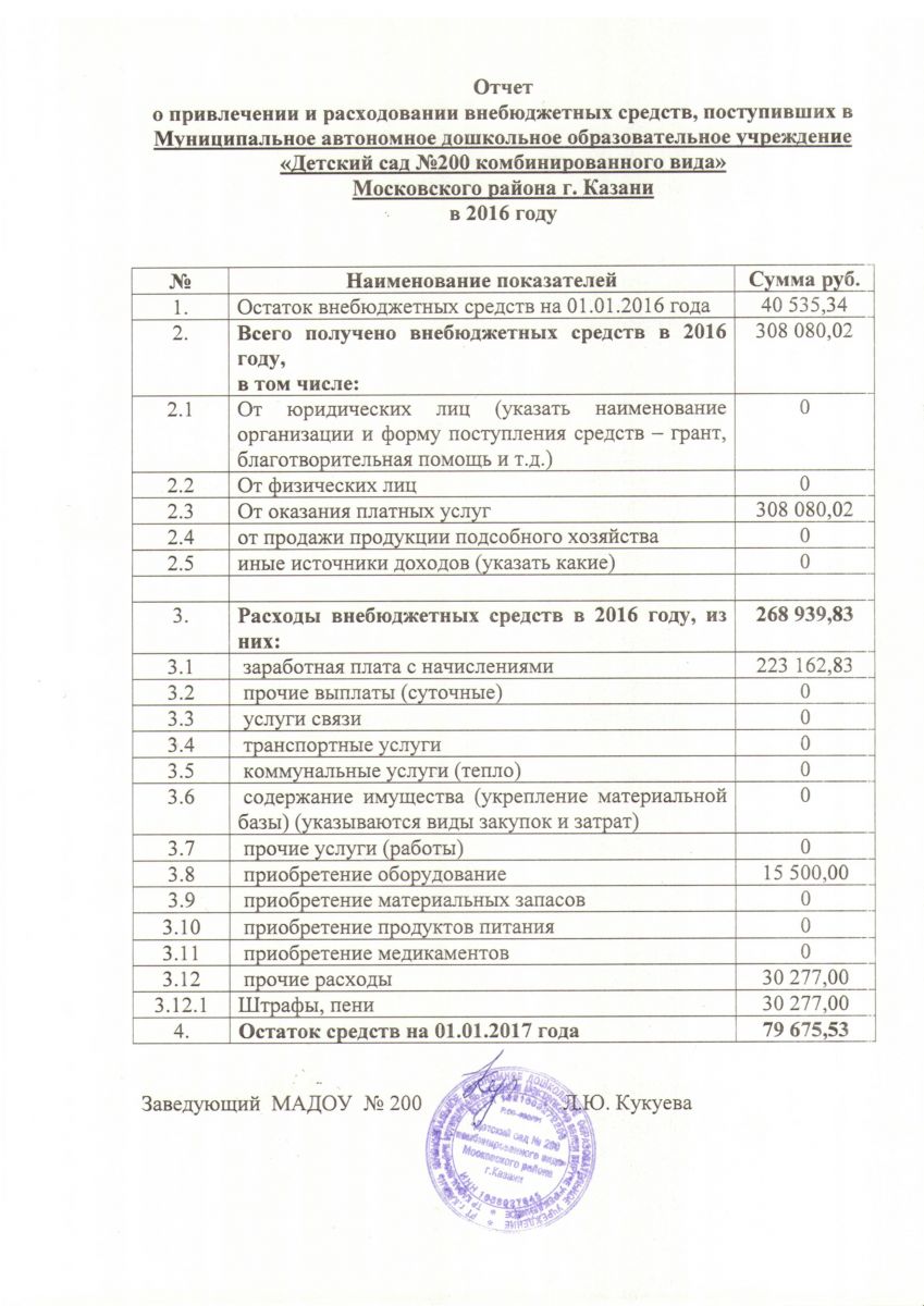 Отчет о привлечении и расходовании внебюджетных средств за 2016 год.