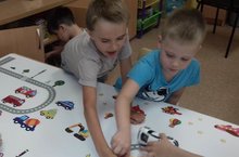 В старшей группе №6 ребята совместно с воспитателем начали изготовление макета «Безопасная дорога». Данный макет представляет собой игровое наглядное пособие по изучению ПДД и безопасности дорожного движения дошкольников. Работа только началась, потребуется еще сделать объемные фигурки домов, дорожных знаков, деревьев. Ребята с большим интересом включились в работу.