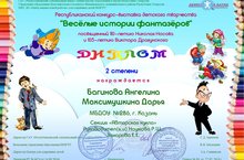 Поздравляем воспитанников нашего детского сада Багинову Ангелину и Максимушкину Дарью с победой в Республиканском конкурсе-выставке детского творчества "Веселые истории фантазеров" посвященный 110-летию Николая Носова и 105-летию Виктора Дрогунского в секции "Авторская кукла".